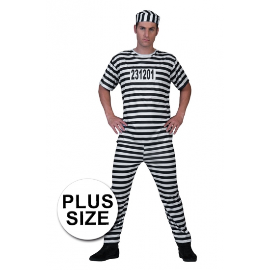 Boeven verkleedkostuum – zwart/wit – grote maten – gevangen pak – volwassenen