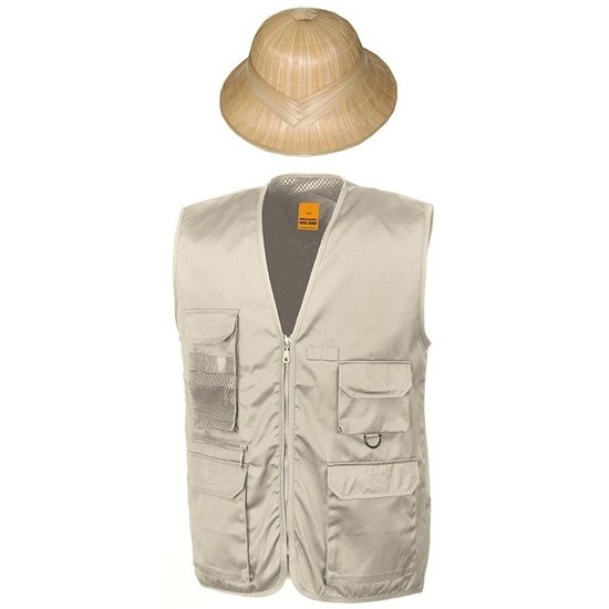 Safari/jungle verkleedset vest en hoed beige voor volwassenen