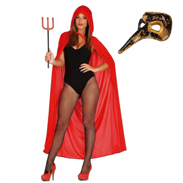 Carnaval gemaskerd bal verkleed set – Snavelmasker – Lange cape met capuchon rood – dames